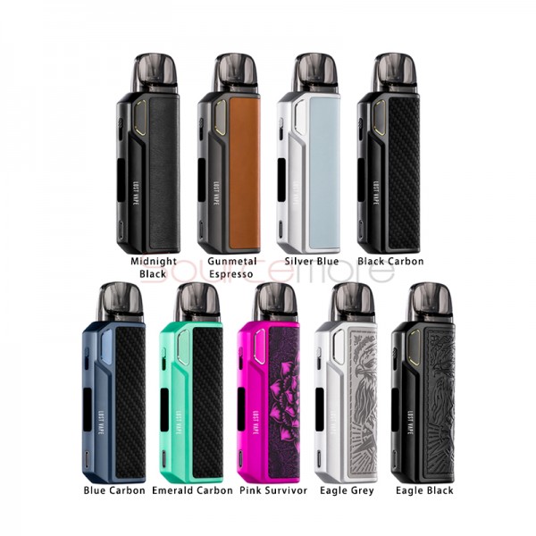 Lost Vape vous propose un pod au design racé avec pas moins de trois finitions à choisir selon vos goûts. Le pod Thelema Elite 40 est conçu pour une vape avec une belle variété de tirages. De l’inhalation indirecte MTL, au tirage plus aérien du RDL, le Thelema Elite 40 Lost Vape est plutôt polyvalent. Sous une armature en alliage de zinc (avec une finition en cuir ou fibre de carbone), se cache une cartouche EP Plus avec une résistance intégrée. Lost Vape vous propose une cartouche de 0.3 Ω pour une vape RDL et une puissance maximale de 40 watts. Une seconde cartouche EP Plus de 0.6 Ω permet de vapoter en MTL, jusqu’à 22 watts.
