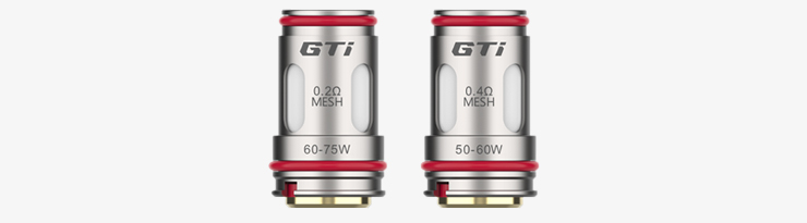 - GTi 0.4 Ω, à utiliser entre 50 et 60 watts. Pour une vape en inhalation directe et une consommation élevée.